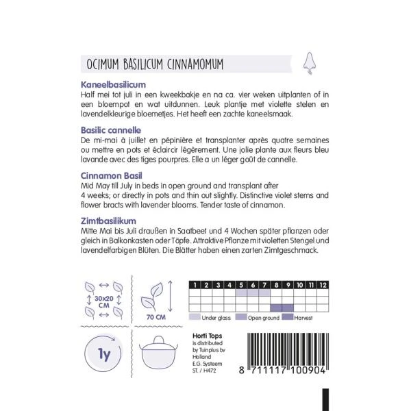 Een leuk éénjarig plantje met violette stelen en lavendelkleurige bloemetjes. Dit keukenkruid heeft een zachte kaneelsmaak.