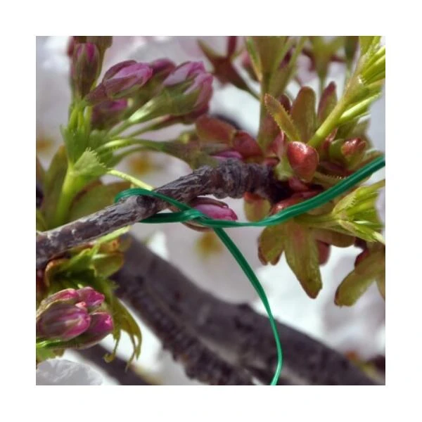 Een set van fijne groene binddraad, geschikt voor het tijdelijk aanbinden van planten en voor het toebinden van bijvoorbeeld afvalzakken.