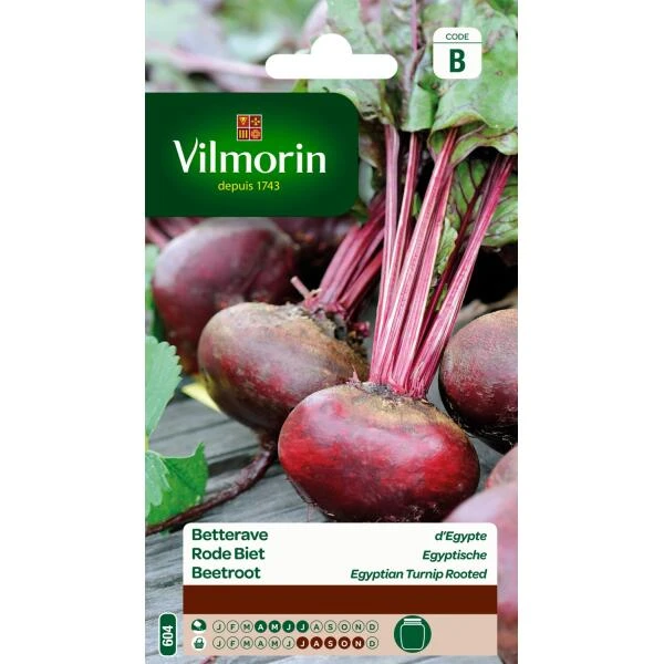 Deze Egyptische bietenvariëteit vormt platronde en middelgrote bietjes met een donkerrode kleur en een ?jne smaak. Vroeg en goed bewaarbaar tijdens de winter. Rode bieten bevatten meerdere mineralen (ijzer, calcium, kalium) en vitamines (A, B, C en PP).