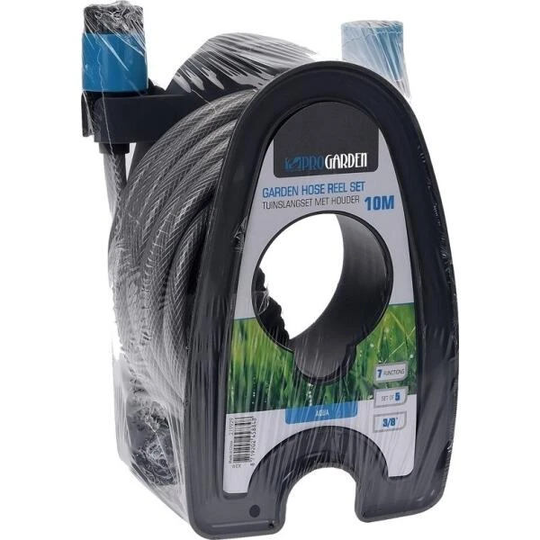 Handige, complete tuinslangset in compact formaat, ideaal voor gebruik in de tuin, op het balkon, dakterras en op reis.